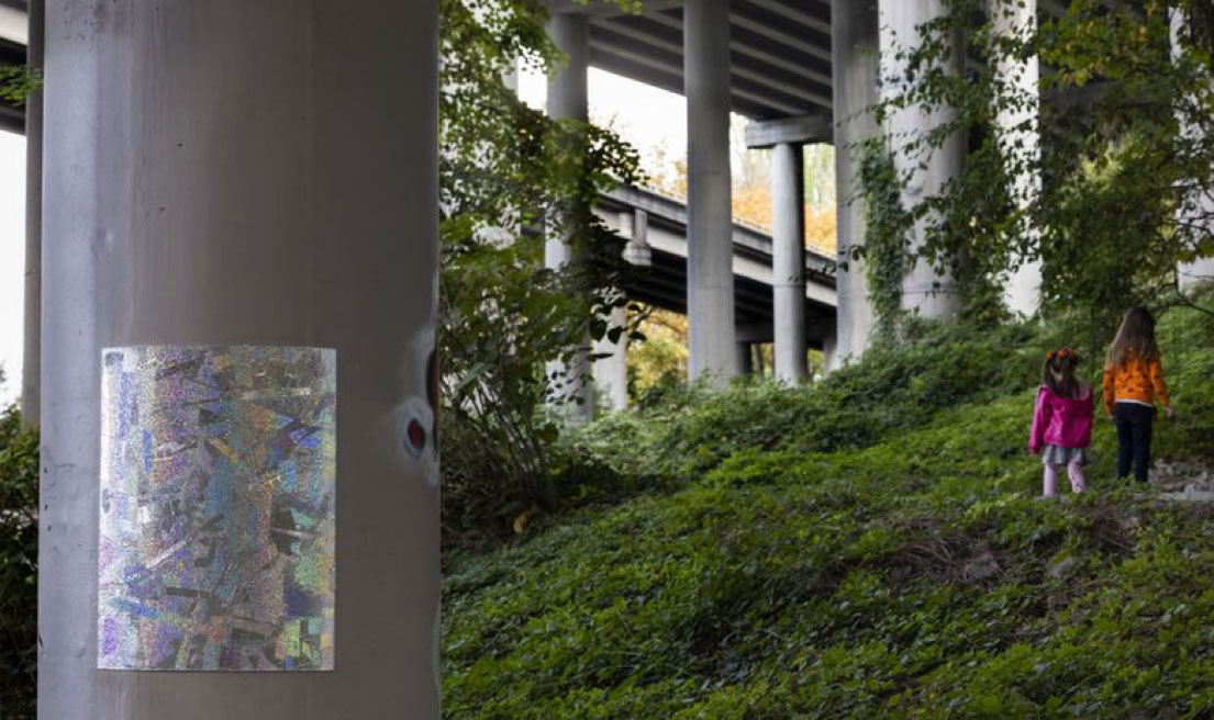 Organizing art in Seattle’s parks is a surprisingly streamlined undertaking, Offenbacher says. But roping in the Washington State Department of Transportation to show the works on the freeway columns added a much deeper level of bureaucracy.