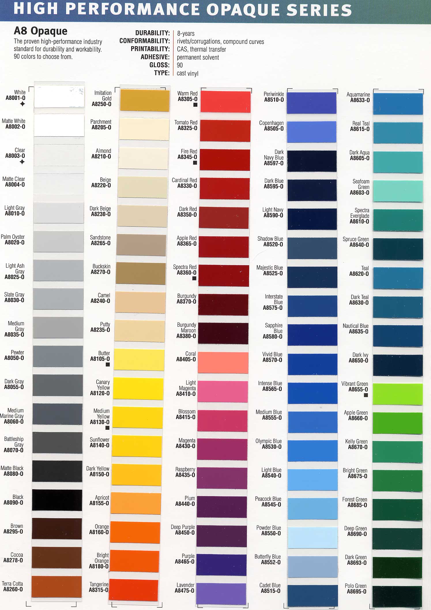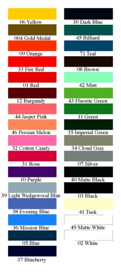 Vinyl Color Charts