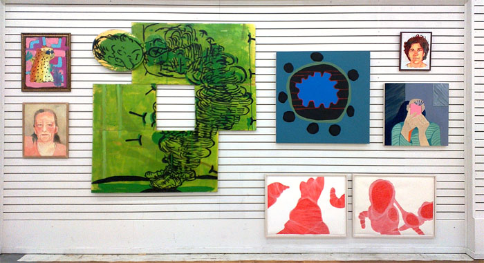 paintings by (clockwise from lower left): Peter Gross, Gillian Theobald, Linda Davidson, Laura Castellanos, Laura Castellanos, Joey Veltkamp and Andrew Rubinstein.
