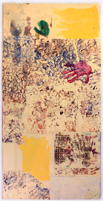 distemper, acrylic, pigment, paper, foam, glue, oranges