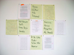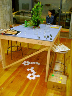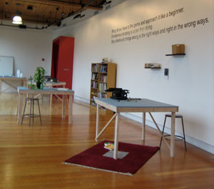 Curator Yoko Ott and artist Matthew Offenbacher teamed up to investigate the aesthetic power of objects and ideas in the lives of artists, curators, and university professors by carefully pairing thirteen artists with thirteen professional thinkers. The artists were asked to visit their assigned person’s workplace, engage them in conversation, and select several things to borrow for the duration of the exhibition. The objects brought back from these expeditions—tools, raw materials, décor, texts, and other (harder to classify) items—have been installed by the artists in a setting especially designed by Ott and Offenbacher. The resulting exhibition is a hands-on database: a non-hierarchical collection of objects available for reading, touching, and looking.