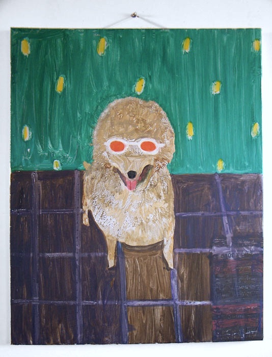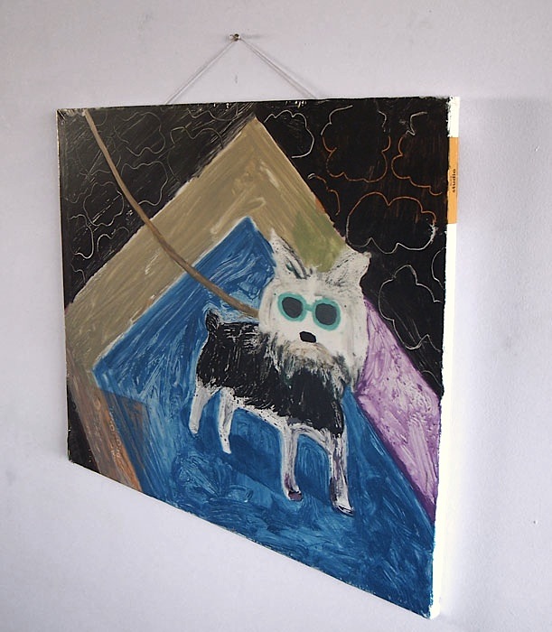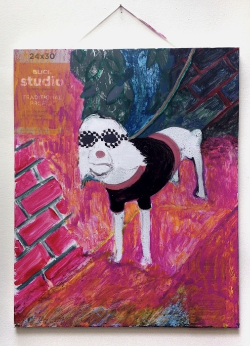 Dog with Sunglasses #4, acrylic on shrinkwrap on canvas, 24 x 30", 2015