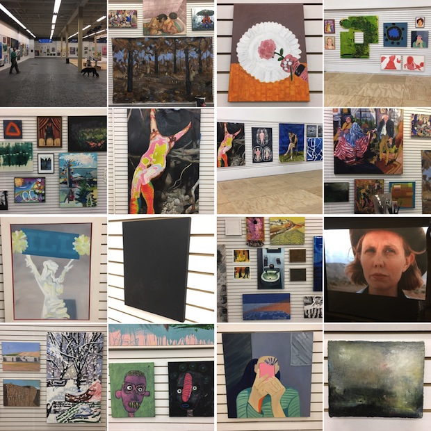 Displayed salon-style in tiered rows on three long walls without any labels or prices, selections are seen under crowded circumstances that make it more difficult for abstract or minimalist pictures to be seen to their best advantage than for figurative or representational works. Because of the artist-referral method and artists’ self-curating, viewers’ responses will hinge on whether they have prior or no familiarity with a given artist. “American Painting Today” (even the title is a sly joke) is a modest, hometown effort, but one with considerable pleasures and delights among which are interspersed disappointments. How could it be otherwise? Quality control is replaced by lots of good will.