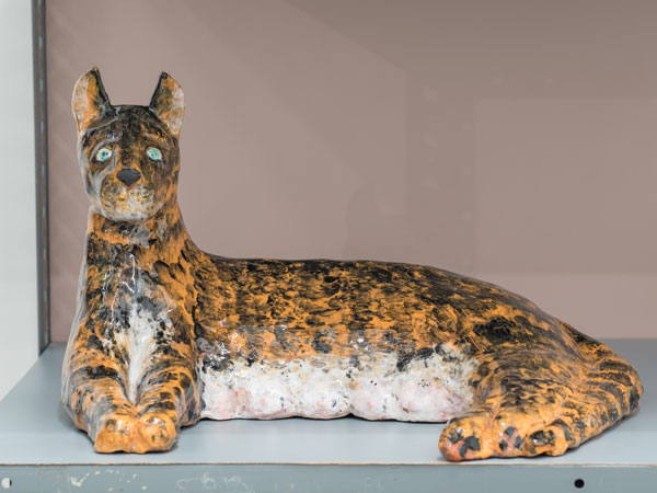 My cat died a year ago. Around that time, my friend Jeff generously offered the use of his ceramic studio while he was out of the country. I knew little about making ceramics, but working in Jeff’s space, using his stuff, made anything seem possible. One thing about Turtle (this was my cat’s name) is that he was taken at a very young age from a feral colony. As a result, he was bottle-fed by humans and never properly weaned. Many years into adult life he exhibited classic displaced juvenile traits: kneading and drooling, sucking on buttons, hoarding and hiding favorite objects. There were also things he seemed to have invented himself, such as an elaborate ritual before and after any drink of water. He would solemnly dip his foot into the water several times, scrape it across the ground, drink, then spend a few minutes making suckling noises while staring into space.
